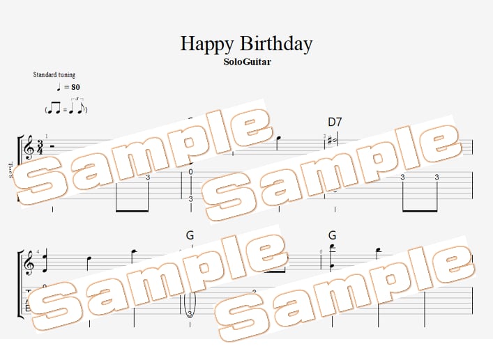 ギター初心者〜中級者向けにアレンジされた、「Happy Birthday」のソロギターTAB譜(PDF)です。